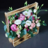 Сборная композиция из кустовых роз, эустомы и зелени в ящике.